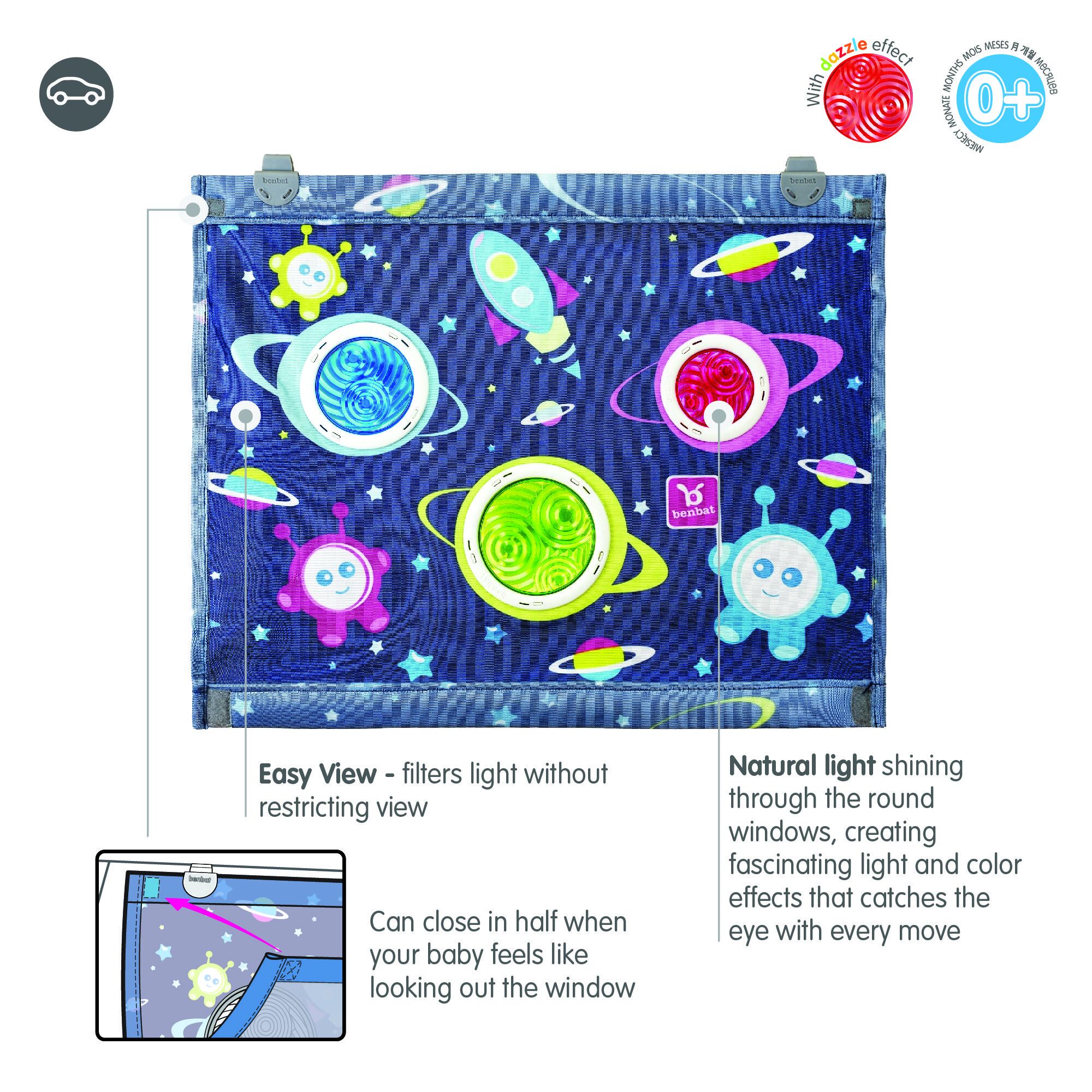 - FUN & COLOURFUL – Specially designed to create a fun environment while in the car, our space themed car sun shade for kids provides plenty of visually engaging shapes and colors for your little ones to play and explore while on the go